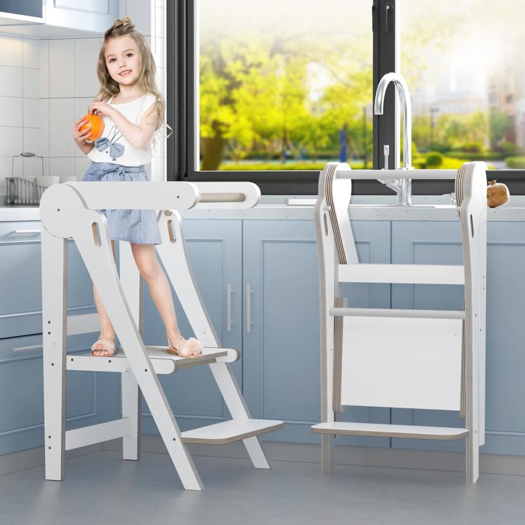 Taburete plegable de cocina para niños pequeños Montessori, taburete de aprendizaje ecológico