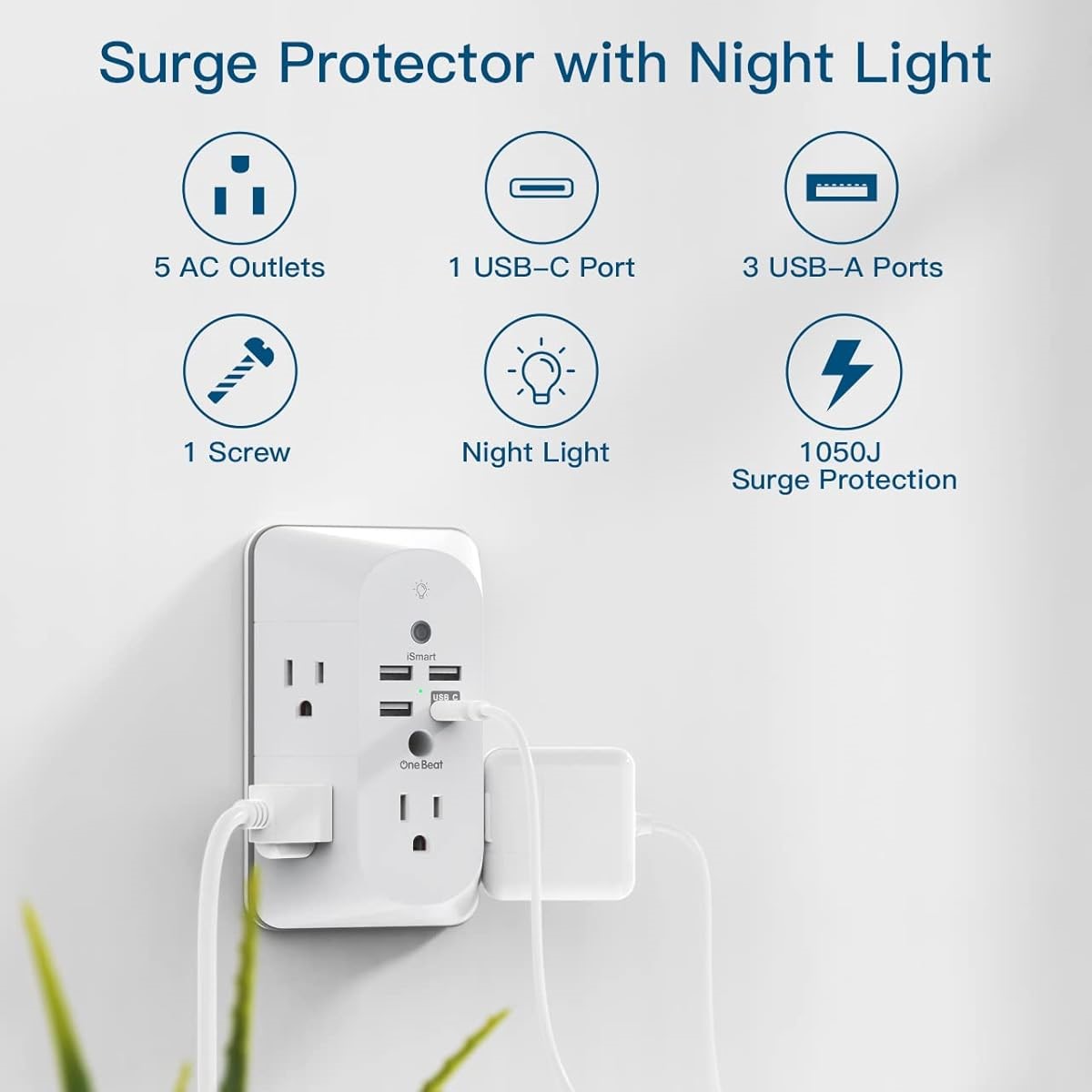 Toma de pared USB 9 en 1: ajuste perfecto a la toma dúplex.