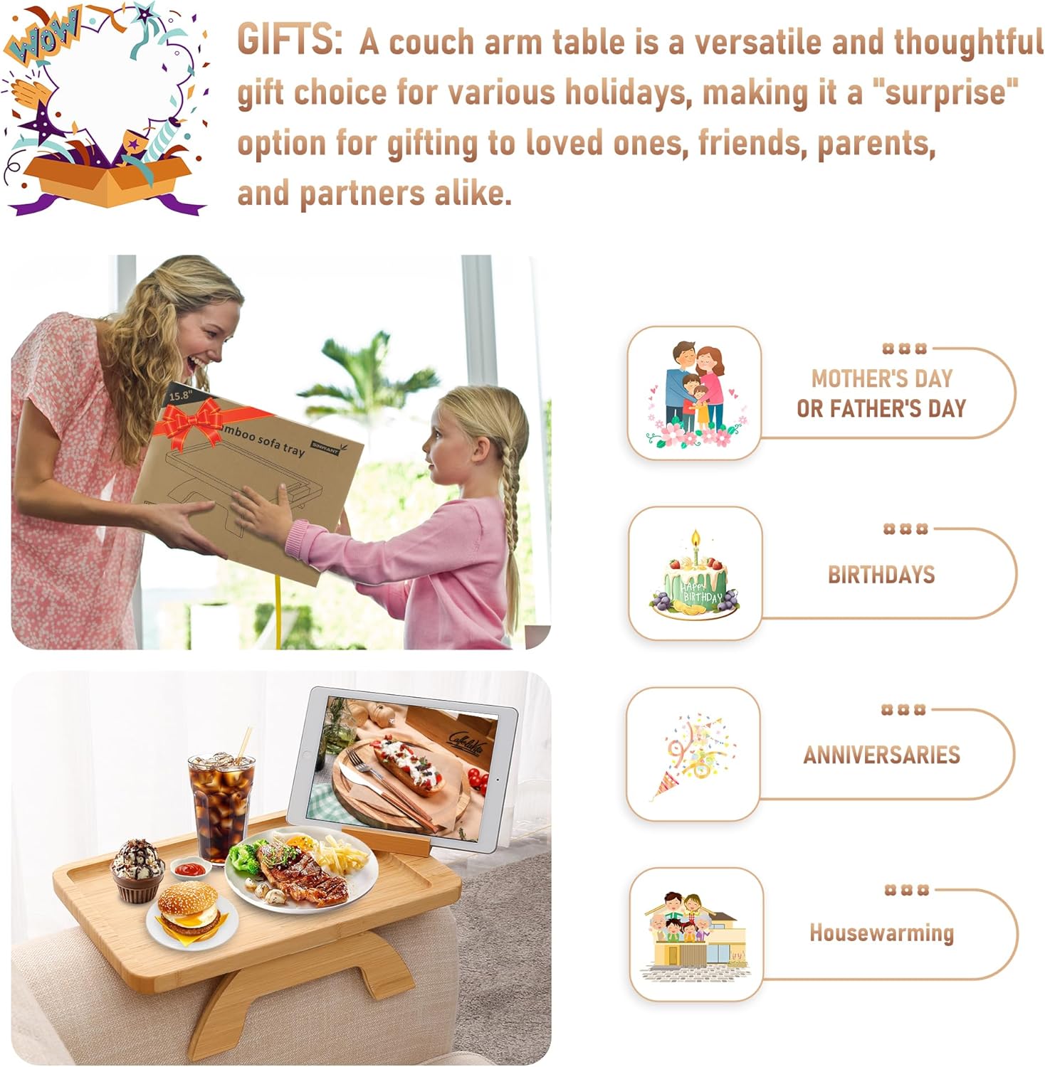 Mesa auxiliar con bandeja y soporte para teléfono de 360°